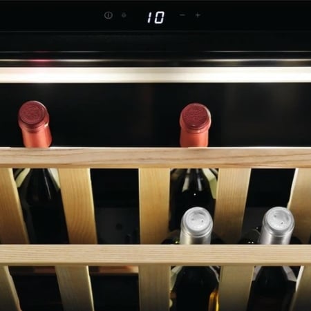 De wijnkelder is ook geschikt voor grote flessen, zoals de magnum-formaten champagne en prosecco. De planken zijn ontworpen met maximale flexibiliteit in het achterhoofd en kunnen flessen van verschillende vormen en maten bevatten. Er is altijd ruimte voor uw favoriete wijn.