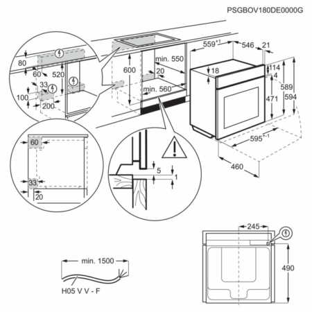 Oven deur / temp. voorkant boven kamertemperatuur [° C]: 3 glazen / 30