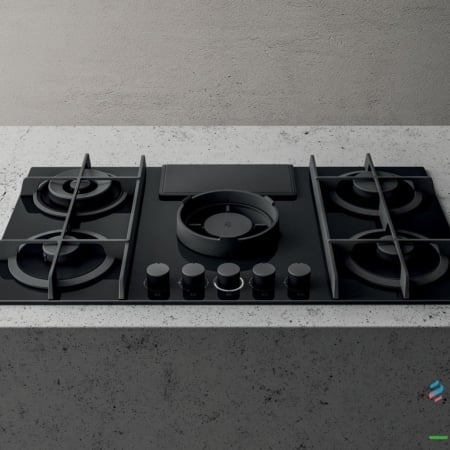 Elica NIKOLATESLA FLAME BL/A/83, Zwart, Ingebouwd, 88 cm, Gaskookplaat, Gietijzer, 4 zone(s)