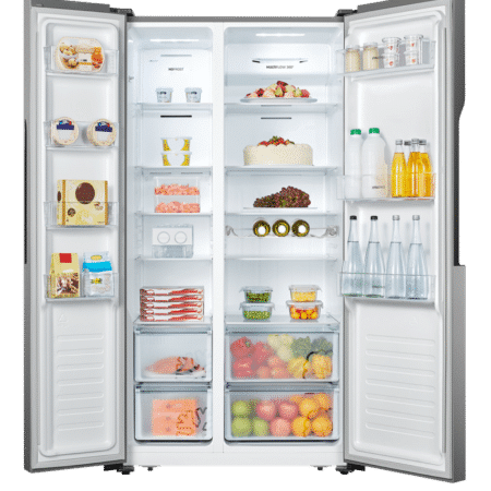 De AKV578RVS Amerikaanse koelkast van ETNA is er eentje met zeeën van ruimte en een stoer uiterlijk. Het RVS design onderstreept het moderne karakter van deze koelkast met apart koel- en vriesgedeelte. Het LED display is op een strakke manier verwerkt in de deur van de vriezer. Hierop zie je in één oogopslag de temperatuur in het vries- en in het koelgedeelte en stel je deze indien gewenst bij. Het koelgedeelte aan de rechterzijde heeft een netto inhoud van maar liefst 334 liter en biedt een zee aan flexibele opbergruimte. Zo zijn er vijf plateaus van veiligheidsglas, waarvan er vier in hoogte verstelbaar zijn, een flessenrek en twee transparante groentelades. Eén van de lades is voorzien van de Crispzone: daarin blijven al je groente en fruit extra lang lekker. We hebben hem ook maar doorzichtig gemaakt, zodat je niet vergeet dat er nog wat op je te wachten ligt. Dankzij de heldere LED verlichting zijn sowieso alle onderdelen constant goed verlicht.De Inverter motor van de AKV578RVS verbruikt minder energie dan een conventionele motor en maakt hierbij ook nog eens minder geluid. Last but not least heeft deze Amerikaan een luchtfilter in het koelgedeelte die nare luchtjes tegengaat.