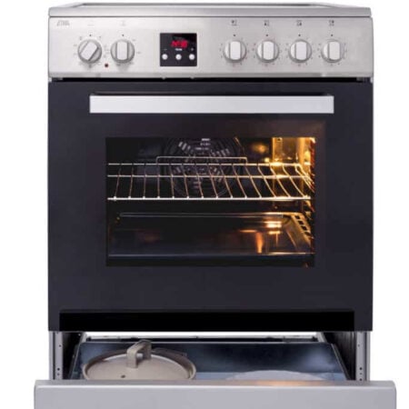 Met een oveninhoud van 65 liter is er voldoende ruimte voor pizza’s, taarten en heerlijke lasagnes. Dankzij de geëmailleerde ovenruimte en de vlakke glazen ovendeur is ook het schoonmaken snel gedaan. Het fornuis is met een aansluitwaarde van 10,5 kW uitsluitend geschikt voor een 3-fasen aansluiting.