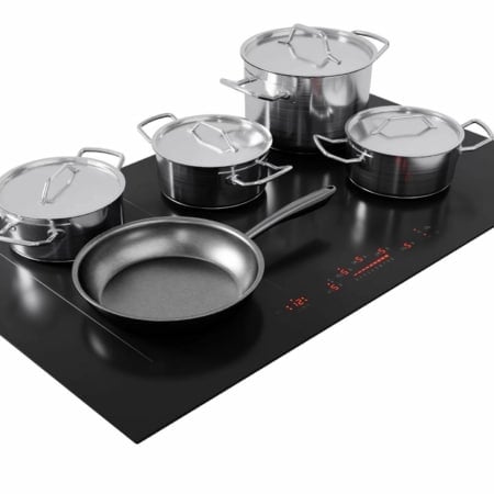 - Kookplaat is 90 cm breed en past in een nis van 75 cm