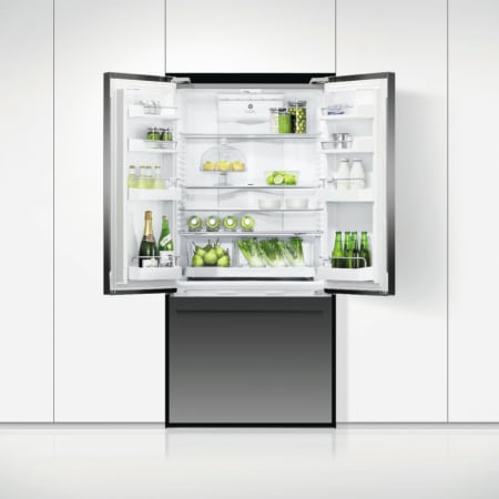 De Fisher & Paykel RF522ADB5 is een 79 cm. brede design koelkast uitgevoerd in een French door model. Deze zwarte uitvoering (EZkleen inox zwart, blacksteel) heeft een ruime vrieslade onder en twee koeldeuren boven. De twee koeldeuren bieden toegang tot een brede en ruime koelzone.