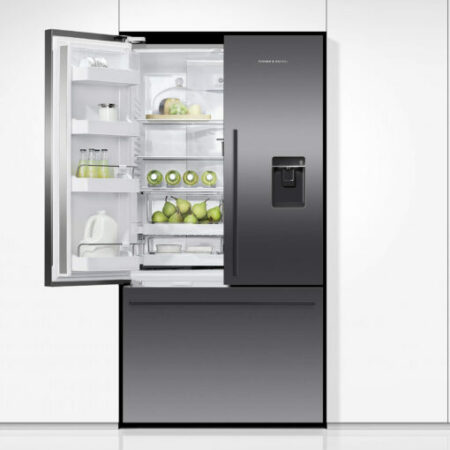 De Fisher & Paykel RF540ADUSB5 is een 90 cm. brede side-by-side koelkast uitgevoerd in een French door model in het blacksteel (EZkleen inox zwart). Dit Amerikaanse model heeft een ruime vrieslade onder en twee koeldeuren boven. De twee koeldeuren bieden toegang tot een brede en ruime koelzone.