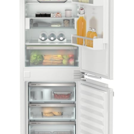 Liebherr ICNc 5123 Plus NoFrost. Totale nettocapaciteit: 253 l. Deurscharnieren: Rechts, Type beeldscherm: LCD. Klimaatklasse: SN-T, Geluidsniveau: 34 dB. Nettocapaciteit koelkast: 183 l, No Frost (koelkast), Koelkast binnenverlichting, Aantal planken koelkast: 6. Nettocapaciteit vriezer: 70 l, Vriescapaciteit: 6 kg/24u, No Frost (vriezer). Energie-efficiëntieklasse: C, Jaarlijks energieverbruik: 145 kWu. Kleur van het product: Wit