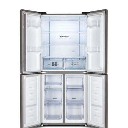 Fridgemaster MQ79394ES. Apparaatplaatsing: Vrijstaand, Productontwerp: Frans deur, Kleur van het product: Zilver. Totale nettocapaciteit: 427 l, Klimaatklasse: N-T, Geluidsemissieklasse: C. Nettocapaciteit koelkast: 278 l, Soort lamp: LED. Nettocapaciteit vriezer: 149 l, Vriezer positie: Onder, Vriescapaciteit: 12 kg/24u. Snoerlengte: 2 m