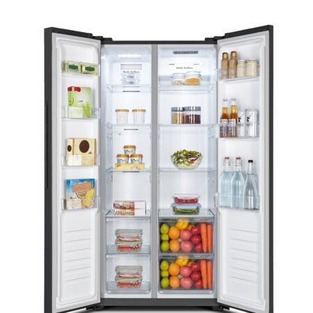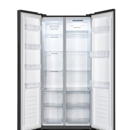 Fridgemaster MS83430EB. Apparaatplaatsing: Vrijstaand, Productontwerp: Amerikaanse deur, Kleur van het product: Zwart. Totale nettocapaciteit: 441 l, Klimaatklasse: SN-N, Geluidsemissieklasse: D. Nettocapaciteit koelkast: 266 l, Soort lamp: LED. Nettocapaciteit vriezer: 175 l, Vriezer positie: Ernaast, Vriescapaciteit: 12 kg/24u. Snoerlengte: 2 m