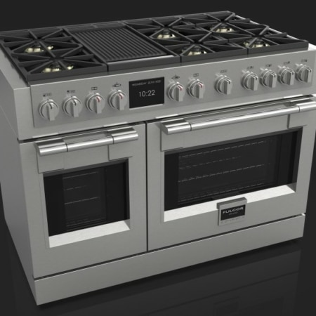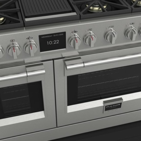 Benaderingskeuken Fulgor FSRC 4807 2P MK 2F X cm. 122 - 6 branders + 2 elektrische ovens - RVS