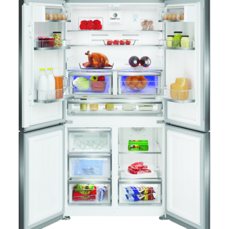 Grundig GQN21355XN RVS No Frost Amerikaanse koelkast 4 deurs inwendige water en ijs dispencer + turbo ijsmaker