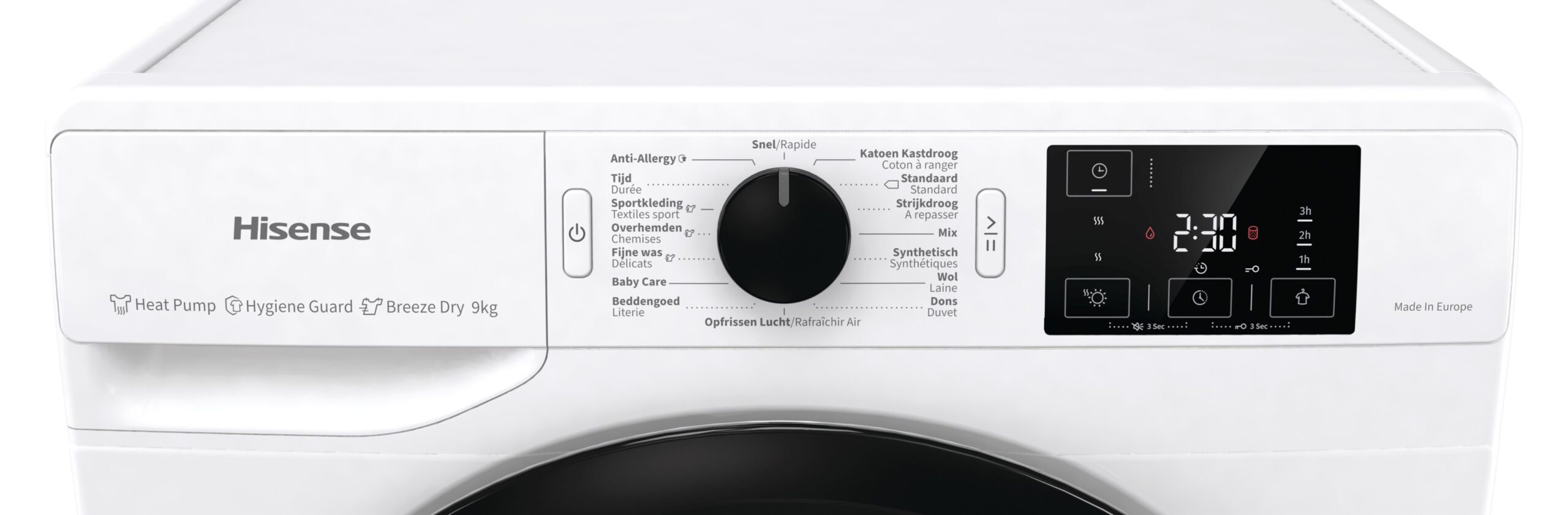 De Hisense wasdrogers hebben een van de grootste deuropeningen. Super eenvoudig en handig voor het in- en uitladen van de machine. De machine heeft een opening van 36 cm breed met een deur die opent tot een hoek van 180 graden.