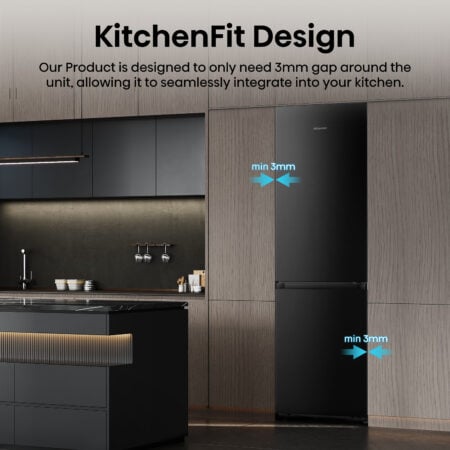 Hisense RB5K330GSFC. Totale nettocapaciteit: 330 l. Deurscharnieren: Rechts, Type beeldscherm: LED. Klimaatklasse: SN-T, Geluidsniveau: 35 dB. Nettocapaciteit koelkast: 215 l, No Frost (koelkast), Multi-luchtwegsysteem (koelkast), Koelkast binnenverlichting. Nettocapaciteit vriezer: 115 l, Vriescapaciteit: 10 kg/24u, No Frost (vriezer). Energie-efficiëntieklasse: C, Jaarlijks energieverbruik: 165 kWu. Kleur van het product: Zwart, Roestvrijstaal