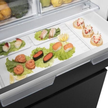 Hisense RF540N4WFE. Apparaatplaatsing: Vrijstaand, Productontwerp: Frans deur, Kleur van het product: Zwart. Totale nettocapaciteit: 480 l, Klimaatklasse: SN-ST, Geluidsemissieklasse: C. Nettocapaciteit koelkast: 302 l, Soort lamp: LED. Nettocapaciteit vriezer: 128 l, Vriezer positie: Onder, Vriescapaciteit: 7 kg/24u. Energie-efficiëntieklasse: E, Jaarlijks energieverbruik: 310 kWu, Energie-efficiëntieschaal: A tot G