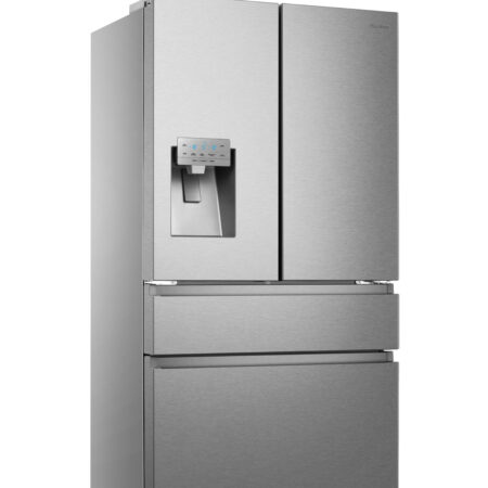 HisenseHisense RF728N4AIF, Vrijstaand, Frans deur, Roestvrijstaal, LED, Op de deur, Glas