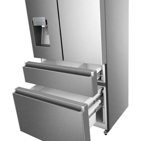 Hisense RF728N4AIF. Apparaatplaatsing: Vrijstaand, Productontwerp: Frans deur, Kleur van het product: Roestvrijstaal. Totale nettocapaciteit: 560 l, Klimaatklasse: SN-T, Geluidsemissieklasse: C. Nettocapaciteit koelkast: 329 l, Soort lamp: LED. Nettocapaciteit vriezer: 231 l, Vriezer positie: Onder, Vriescapaciteit: 7 kg/24u. Energie-efficiëntieklasse: F, Jaarlijks energieverbruik: 413 kWu, Energie-efficiëntieschaal: A tot G