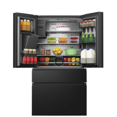 Hisense RF728N4SBFE. Apparaatplaatsing: Vrijstaand, Productontwerp: Frans deur, Kleur van het product: Zwart. Totale nettocapaciteit: 560 l, Klimaatklasse: SN-ST, Geluidsemissieklasse: C. Nettocapaciteit koelkast: 329 l, Soort lamp: LED. Nettocapaciteit vriezer: 231 l, Vriezer positie: Onder, Vriescapaciteit: 7 kg/24u. Energie-efficiëntieklasse: E, Jaarlijks energieverbruik: 344 kWu, Energie-efficiëntieschaal: A tot G