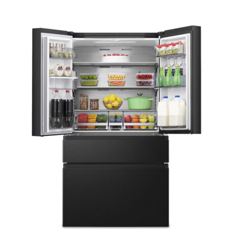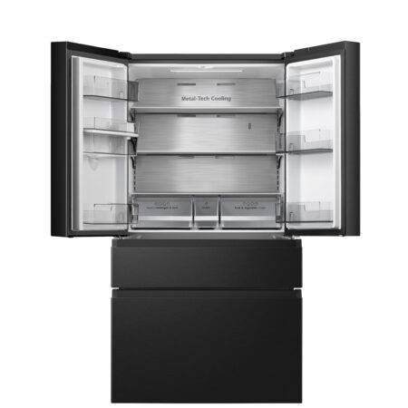 Hisense RF749N4WFF. Apparaatplaatsing: Vrijstaand, Productontwerp: Frans deur, Kleur van het product: Zwart. Totale nettocapaciteit: 579 l, Klimaatklasse: ST-T, Geluidsemissieklasse: C. Nettocapaciteit koelkast: 367 l, Koelkast temperatuurbereik: 2 – 8 °C, Soort lamp: LED. Nettocapaciteit vriezer: 212 l, Vriezer positie: Onder, Vriescapaciteit: 7 kg/24u. Converteerbare compartiment temperatuurbereik: -18 – 5 °C
