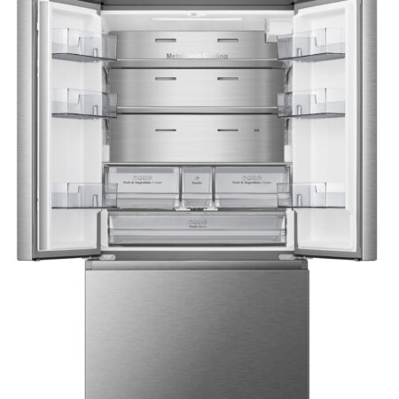 Hisense RF815N4SESE. Apparaatplaatsing: Vrijstaand, Productontwerp: Frans deur, Kleur van het product: Roestvrijstaal. Totale nettocapaciteit: 634 l, Klimaatklasse: SN-T, Geluidsemissieklasse: C. Nettocapaciteit koelkast: 442 l, Soort lamp: LED. Nettocapaciteit vriezer: 185 l, Vriezer positie: Onder, Vriescapaciteit: 7 kg/24u. Snoerlengte: 2 m