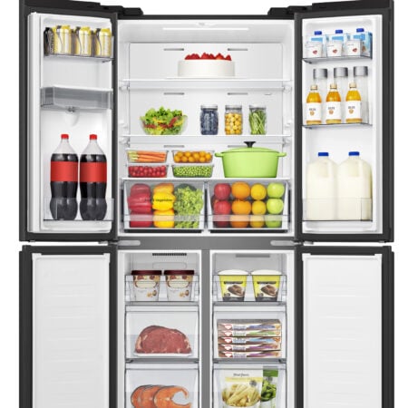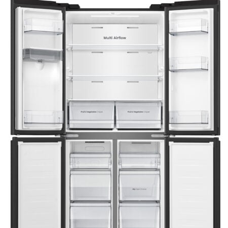 Hisense RQ5P470SMFE. Totale nettocapaciteit: 482 l. Deurscharnieren: Links, Type beeldscherm: LED. Klimaatklasse: SN-T, Geluidsniveau: 37 dB. Nettocapaciteit koelkast: 303 l, No Frost (koelkast), Multi-luchtwegsysteem (koelkast), Koelkast binnenverlichting, Aantal planken koelkast: 2. Nettocapaciteit vriezer: 179 l, Vriescapaciteit: 8 kg/24u, No Frost (vriezer). Energie-efficiëntieklasse: E, Jaarlijks energieverbruik: 293 kWu