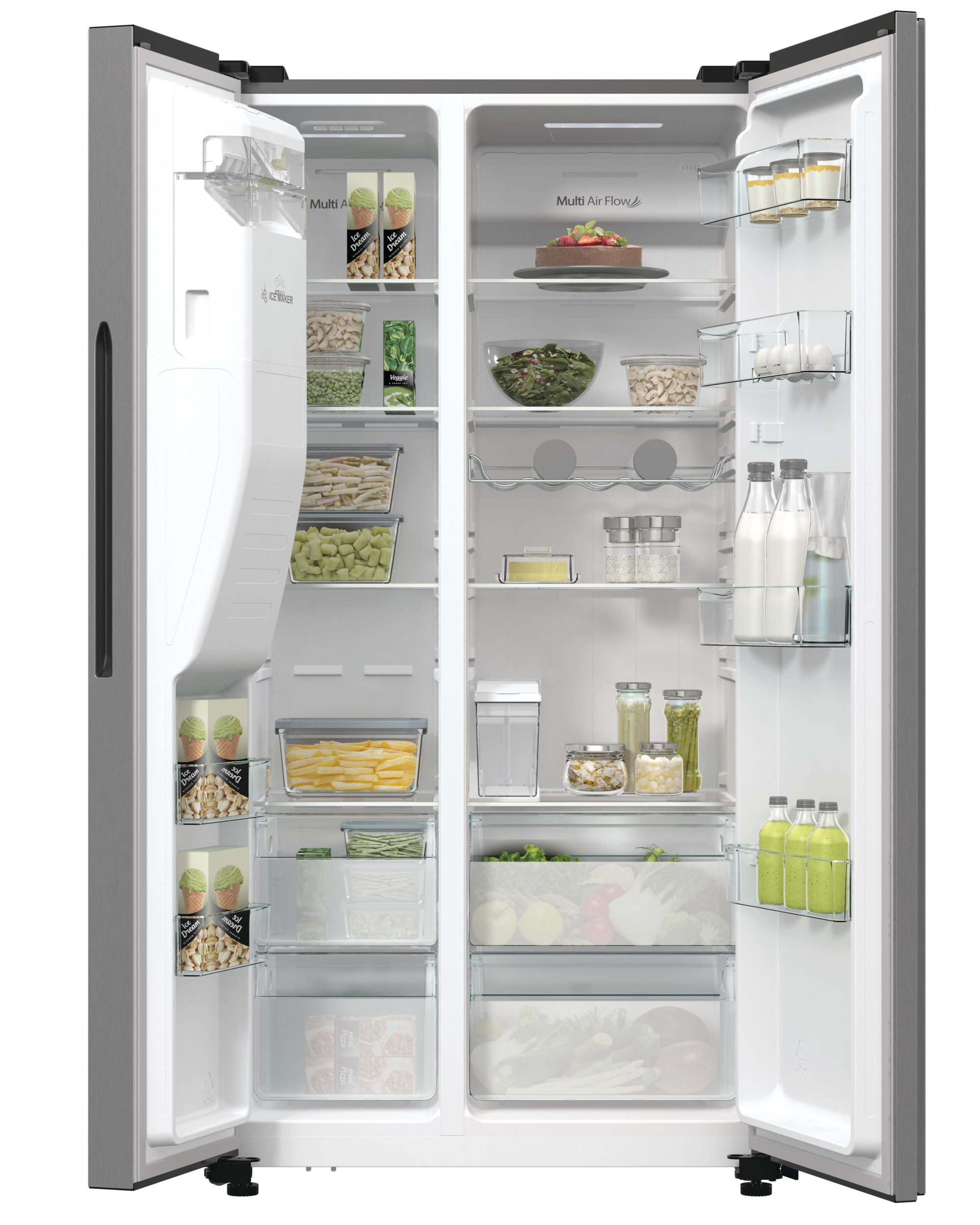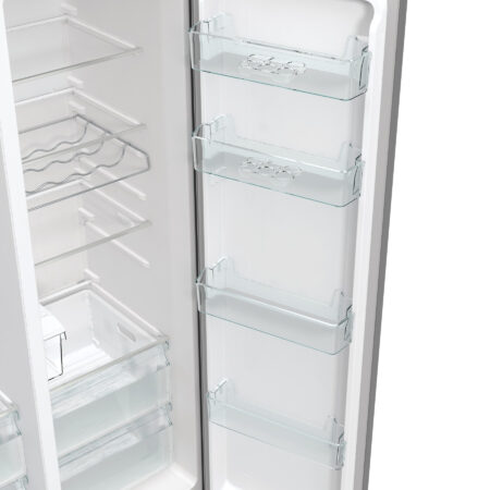 Hisense RS5P535NTCDUK. Apparaatplaatsing: Vrijstaand, Productontwerp: Frans deur, Kleur van het product: Roestvrijstaal. Totale nettocapaciteit: 566 l, Klimaatklasse: SN-N, Geluidsemissieklasse: C. Nettocapaciteit koelkast: 376 l, Brutocapaciteit koelkast: 376 l, Soort lamp: LED. Nettocapaciteit vriezer: 190 l, Vriezer positie: Ernaast, Vriescapaciteit: 12 kg/24u. Snoerlengte: 2,5 m
