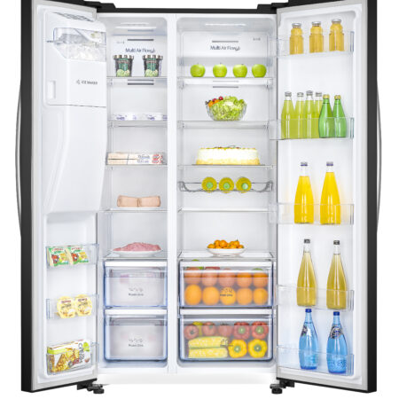Hisense RS694N4IBF. Apparaatplaatsing: Vrijstaand, Productontwerp: Amerikaanse deur, Kleur van het product: Zwart. Totale nettocapaciteit: 535 l, Klimaatklasse: SN-T, Geluidsemissieklasse: D. Nettocapaciteit koelkast: 368 l. Nettocapaciteit vriezer: 167 l, Vriezer positie: Ernaast, Vriescapaciteit: 13 kg/24u. Snoerlengte: 2 m