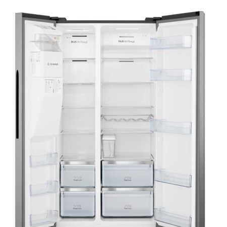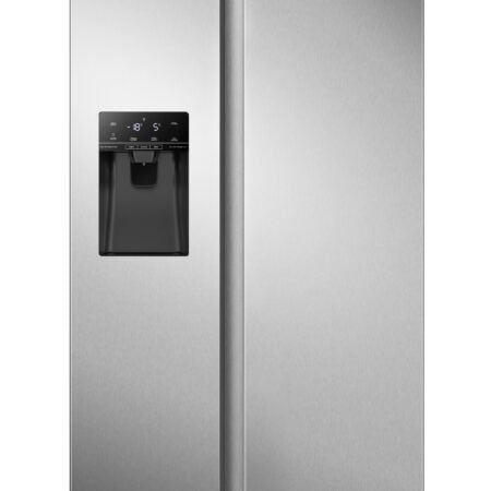 Hisense RS694N4TZE. Apparaatplaatsing: Vrijstaand, Productontwerp: Amerikaanse deur, Kleur van het product: Roestvrijstaal. Totale nettocapaciteit: 562 l, Klimaatklasse: N-T, Geluidsemissieklasse: D. Nettocapaciteit koelkast: 371 l, Soort lamp: LED. Nettocapaciteit vriezer: 191 l, Vriezer positie: Ernaast, Vriescapaciteit: 13 kg/24u. Snoerlengte: 2 m