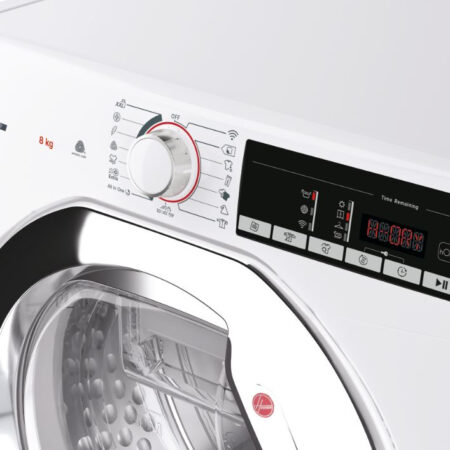 Hoover Dynamic Next HLE H9A2TCE-80, Vrijstaand, Voorbelading, Warmtepomp, Wit, Draaiknop, Touch, Links