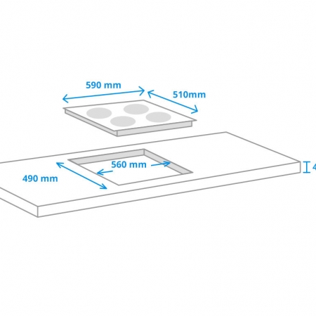 Inventum | Gas | 59.00 cm breed | Inbouw1 x 3kW, 1 x 1kW, 2 x 1.75kW, 590 x 510 mm