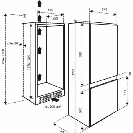 Afmetingen (hxbxd) 1776 x 540 x 540 mm