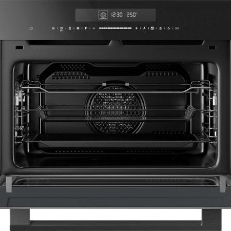 Deze combimagnetron is ook voorzien van een heteluchtoven. Je kunt de oven eventueel voorverwarmen en dan iets bakken zoals in een traditionele oven. Het apparaat is ook voorzien van verschillende handige ovenprogramma’s die je kunt gebruiken.