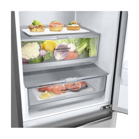LG GBB92STBAP. Totale nettocapaciteit: 384 l. Deurscharnieren: Rechts. Klimaatklasse: SN-T, Geluidsniveau: 36 dB. Nettocapaciteit koelkast: 277 l, No Frost (koelkast), Multi-luchtwegsysteem (koelkast), Koelkast binnenverlichting, Aantal planken koelkast: 4. Nettocapaciteit vriezer: 107 l, Vriescapaciteit: 14 kg/24u, No Frost (vriezer). Energie-efficiëntieklasse: A, Jaarlijks energieverbruik: 115 kWu. Kleur van het product: Roestvrijstaal