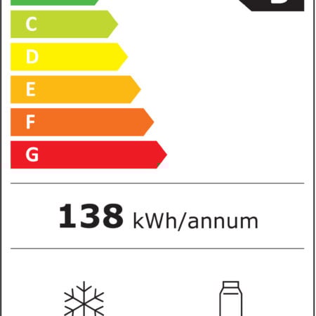 LG GBV22NCBEP . Totale nettocapaciteit: 387 l. Deurscharnieren: Rechts, Type beeldscherm: LED. Klimaatklasse: T, Geluidsniveau: 33 dB. Nettocapaciteit koelkast: 277 l, No Frost (koelkast), Multi-luchtwegsysteem (koelkast), Koelkast binnenverlichting. Nettocapaciteit vriezer: 110 l, Vriescapaciteit: 10 kg/24u, No Frost (vriezer). Vers zone compartiment. Energie-efficiëntieklasse: B, Jaarlijks energieverbruik: 138 kWu