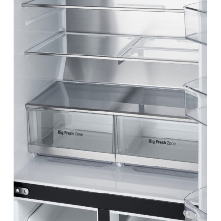 LG GMG860EPBE. Apparaatplaatsing: Vrijstaand, Productontwerp: Multideur, Kleur van het product: Zwart. Totale nettocapaciteit: 508 l, Klimaatklasse: T, Geluidsemissieklasse: C. Nettocapaciteit koelkast: 288 l, Brutocapaciteit koelkast: 320 l, Koelkast temperatuurbereik: 1 – 7 °C. Nettocapaciteit vriezer: 220 l, Vriezer positie: Onder, Vriescapaciteit: 10 kg/24u. Vers zone compartiment bruto capaciteit: 90 l, Vers zone compartiment netto capaciteit: 88 l
