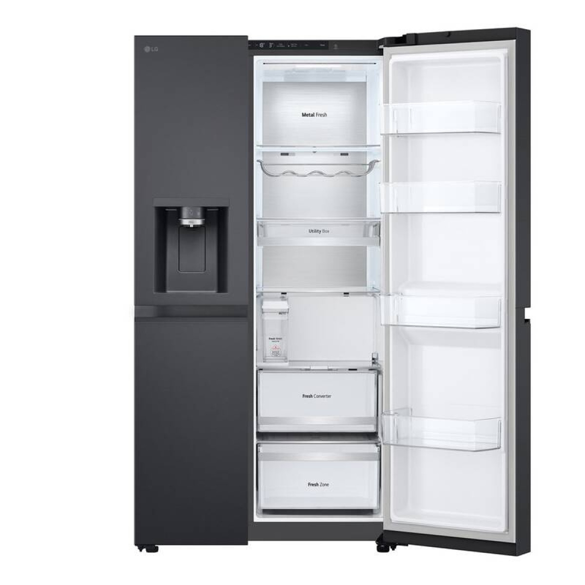 LG GSLE91EVAC. Apparaatplaatsing: Vrijstaand, Productontwerp: Amerikaanse deur, Kleur van het product: Zwart. Totale nettocapaciteit: 628 l, Klimaatklasse: T, Geluidsemissieklasse: B. Nettocapaciteit koelkast: 407 l, Soort lamp: LED. Nettocapaciteit vriezer: 221 l, Vriezer positie: Ernaast, Vriescapaciteit: 12 kg/24u. Bedieningsapps ondersteund: LG ThinQ