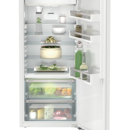Liebherr IRBd 4521 Plus. Apparaatplaatsing: Ingebouwd, Kleur van het product: Wit, Deurscharnieren: Rechts. Totale nettocapaciteit: 207 l, Klimaatklasse: SN-T, Geluidsemissieklasse: B. Nettocapaciteit koelkast: 191 l, Soort lamp: LED, Koelkast temperatuurbereik: 3 – 9 °C. Vriezer positie: Boven, Nettocapaciteit vriezer: 16 l, Vriescapaciteit: 2 kg/24u. Energie-efficiëntieklasse: D, Jaarlijks energieverbruik: 145,3 kWu, Energie-efficiëntieschaal: A tot G