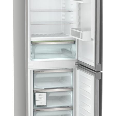 Liebherr CBNsfd 5223. Totale nettocapaciteit: 320 l. Deurscharnieren: Rechts. Klimaatklasse: SN-T, Geluidsniveau: 35 dB. Nettocapaciteit koelkast: 218 l, No Frost (koelkast), Koelkast binnenverlichting, Aantal planken koelkast: 5. Nettocapaciteit vriezer: 103 l, Vriescapaciteit: 10 kg/24u, No Frost (vriezer). Vers zone compartiment. Energie-efficiëntieklasse: D, Jaarlijks energieverbruik: 213 kWu. Kleur van het product: Zilver