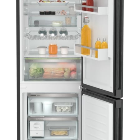 Liebherr CNbdb 5733 Plus NoFrost. Totale nettocapaciteit: 371 l. Deurscharnieren: Rechts, Type beeldscherm: TFT. Klimaatklasse: SN-T, Geluidsniveau: 33 dB. Nettocapaciteit koelkast: 268 l, No Frost (koelkast), Koelkast binnenverlichting, Aantal planken koelkast: 6. Nettocapaciteit vriezer: 103 l, Vriescapaciteit: 10 kg/24u, No Frost (vriezer). Energie-efficiëntieklasse: B, Jaarlijks energieverbruik: 129 kWu. Kleur van het product: Zwart