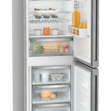 Liebherr CNsfd 5233 Plus. Totale nettocapaciteit: 319 l. Deurscharnieren: Rechts, Type beeldscherm: TFT. Klimaatklasse: SN-T, Geluidsniveau: 35 dB. Nettocapaciteit koelkast: 225 l, No Frost (koelkast), Koelkast binnenverlichting. Nettocapaciteit vriezer: 94 l, Vriescapaciteit: 10 kg/24u, No Frost (vriezer). Vers zone compartiment. Energie-efficiëntieklasse: D, Jaarlijks energieverbruik: 200,8 kWu. Kleur van het product: Zilver