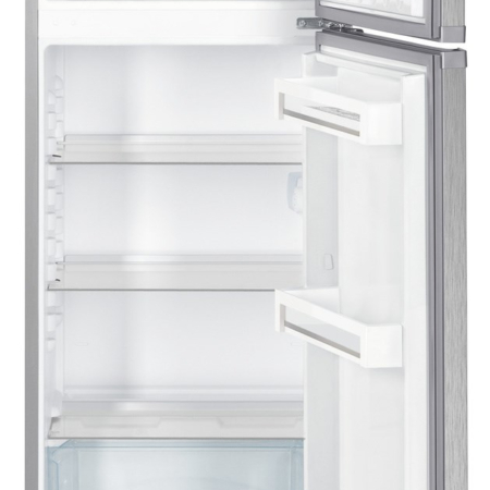 Liebherr CTel 2531. Totale nettocapaciteit: 234 l. Deurscharnieren: Rechts. Klimaatklasse: SN-T, Geluidsniveau: 37 dB. Nettocapaciteit koelkast: 190 l, Koelkast binnenverlichting, Aantal planken koelkast: 3, Aantal groente lades: 1. Nettocapaciteit vriezer: 44 l, Vriescapaciteit: 4 kg/24u, No Frost (vriezer). Energie-efficiëntieklasse: F, Jaarlijks energieverbruik: 212 kWu. Kleur van het product: Zilver