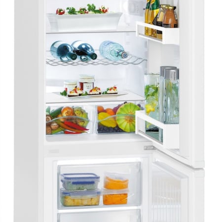 Liebherr CU 2831. Totale nettocapaciteit: 266 l. Deurscharnieren: Rechts. Klimaatklasse: SN-ST, Geluidsniveau: 38 dB. Nettocapaciteit koelkast: 212 l, Koelkast binnenverlichting, Aantal planken koelkast: 4, Aantal groente lades: 2. Nettocapaciteit vriezer: 54 l, Vriescapaciteit: 4 kg/24u. Energie-efficiëntieklasse: F, Jaarlijks energieverbruik: 240 kWu. Kleur van het product: Wit