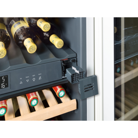 Omgevingsluchtjes kunnen wijnen bij langer bewaren merkbaar beïnvloeden. Bij alle wijnkasten van Liebherr loopt de luchttoevoer via een makkelijk te vervangen FreshAir koolfilter waardoor een optimale luchtkwaliteit wordt gegarandeerd. Bij de Vinidor serie beschikt iedere wijnzone over een eigen koolfilter.