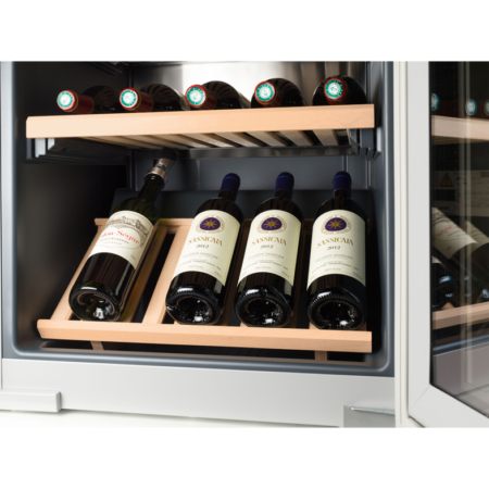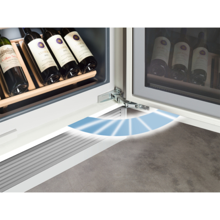 Wijnflessen zijn in de meeste gevallen getint om te voorkomen dat UV-licht de wijn in zijn rijping verstoort. Een getinte fles is echter niet voldoende. Om de belasting van UV-straling te minimaliseren, zijn de Liebherr wijnkasten uitgevoerd met speciaal UV-bestendig isolatieglas. Hiermee is uw wijnvoorraad beschermd en kan deze stijlvol worden gepresenteerd.