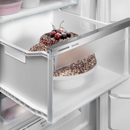 Alle vriesladen en de daaronder geplaatste glasplateaus (indien aanwezig) kunnen eenvoudig worden verwijderd. Zo ontstaat VarioSpace: een praktisch systeem voor extra bewaarruimte zodat zelfs de hoogste ijstaart kan worden bewaard.