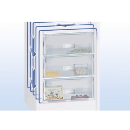 Het verplaatsen van ingevroren producten is niet nodig. In iedere lade kunnen producten snel en vitaminevriendelijk worden ingevroren. De rondom gesloten diepvriesladen met transparante voorzijde zijn extra hoog en uitneembaar. Daarmee garanderen zij een optimaal zicht op de producten in de lade. Iedere lade heeft 2 handgrepen waarmee de lade veilig kan worden uitgenomen.