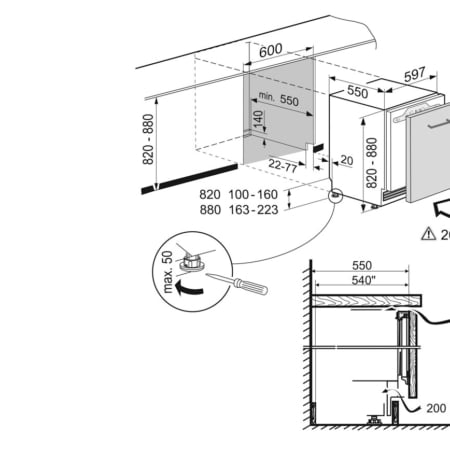 De lucht voor de koeling van het apparaat wordt aan de voorzijde aangevoerd en via de plint ook weer afgevoerd. Hierdoor zijn ventilatiesleuven in het werkblad niet nodig. Dit betekent minder montagewerk en een aanrechtblad zonder openingen.