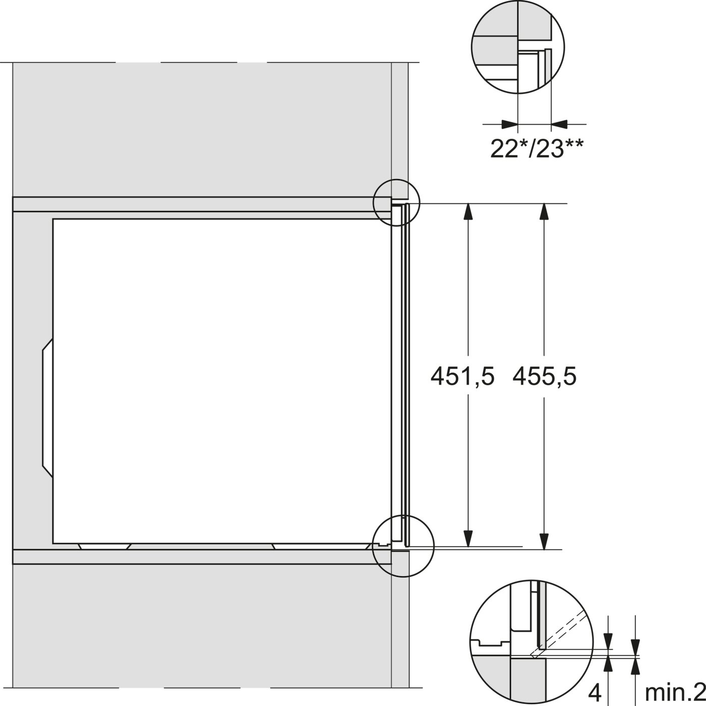 | Installatie compartiment hoogte | 45,2 cm |