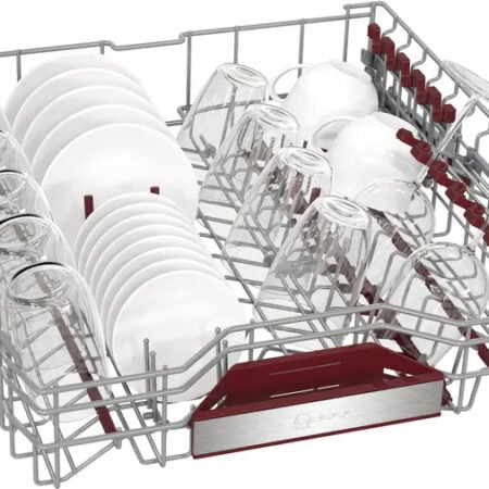 Neff N 50. Apparaatplaatsing: Volledig ingebouwd, Productafmeting: Volledige grootte (60 cm), Kleur bedieningspaneel: Zilver. Aantal couverts: 14 couverts, Geluidsemissieklasse: B, Geluidsniveau: 42 dB. Voetenverstelling: 6 cm, Bedieningsapps ondersteund: Home Connect. Energie-efficiëntieklasse: D, Waterconsumptie per cyclus: 9 l, Energieverbruik per 100 cycli: 85 kWu. Breedte: 598 mm, Diepte: 550 mm, Hoogte: 865 mm