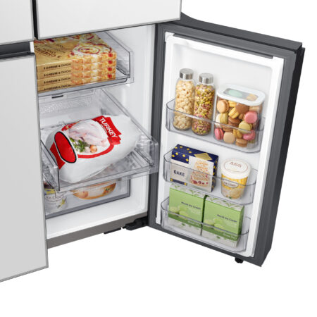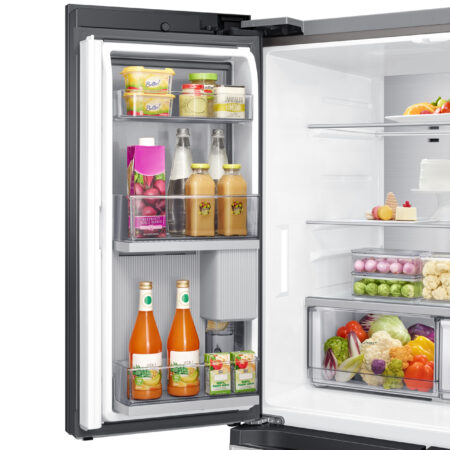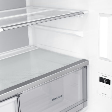 Samsung RF65A9676AP. Apparaatplaatsing: Vrijstaand, Productontwerp: Frans deur, Locatie van display: Binnenin. Totale nettocapaciteit: 647 l, Klimaatklasse: SN-T, Geluidsniveau: 37 dB. Nettocapaciteit koelkast: 397 l, Soort lamp: LED. Nettocapaciteit vriezer: 250 l, Vriezer positie: Onder, Vriescapaciteit: 12 kg/24u. Energie-efficiëntieklasse: E, Jaarlijks energieverbruik: 368 kWu, Energie-efficiëntieschaal: A tot G
