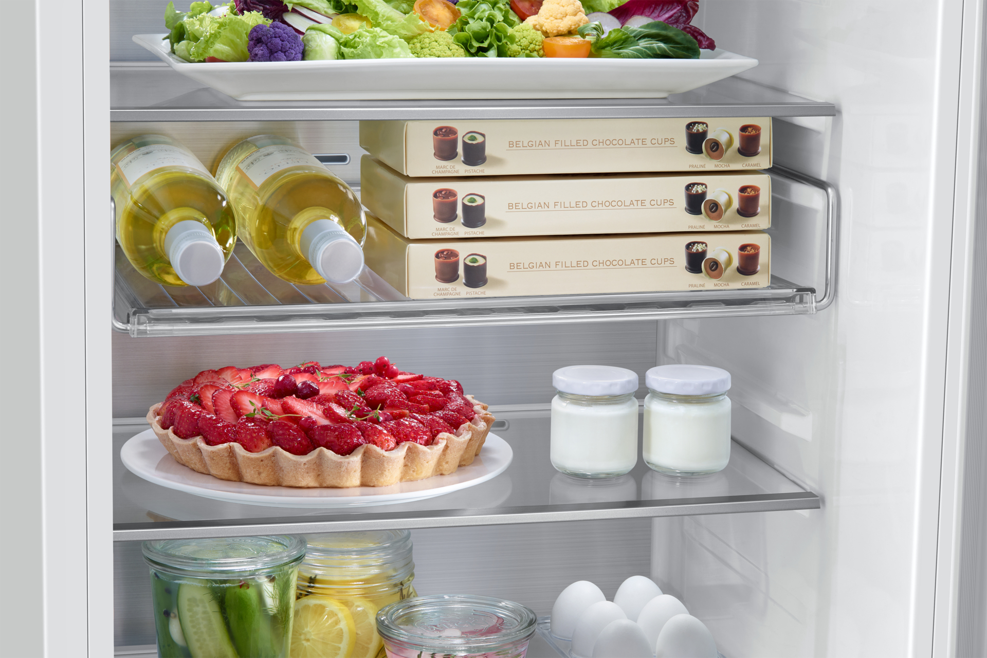 Maak efficiënt gebruik van je koelkastruimte met het multifunctionele Rack & Shelfâ„¢-systeem. Het brede ontwerp is niet alleen geschikt voor gewone wijnflessen, maar ook voor grotere, zoals champagneflessen. De platte vorm maakt het rek veelzijdig, want je kunt er ook andere producten op kwijt, zoals pizza’s en eieren.