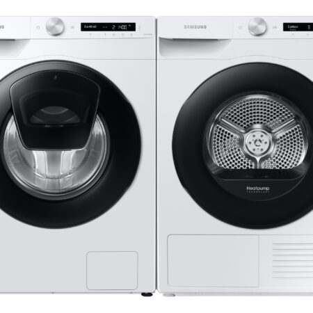 Samsung DV80T5220AW. Apparaatplaatsing: Vrijstaand, Type lader: Voorbelading, Droogsysteem: Warmtepomp. Nominale capaciteit: 8 kg, Condensatie-efficiëntieklasse: B, Droogprogramma’s: Wol, Mix, Droogtijd instelbaar, Snel, Freshen-up, Delicaat/zijde, Deken, Blouse/shirt, Katoen,…. Energie-efficiëntieklasse: A+++, Energie consumptie: 1,41 kWu, Jaarlijks energieverbruik: 176 kWu. Diepte: 600 mm, Breedte: 600 mm, Hoogte: 850 mm