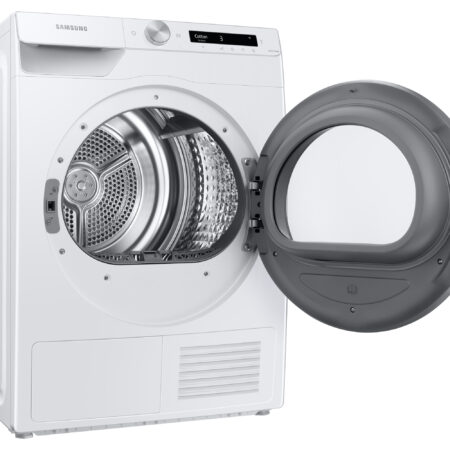 SamsungSamsung DV80T5220AW, Vrijstaand, Voorbelading, Warmtepomp, Wit, Draaiknop, Touch, Rechts